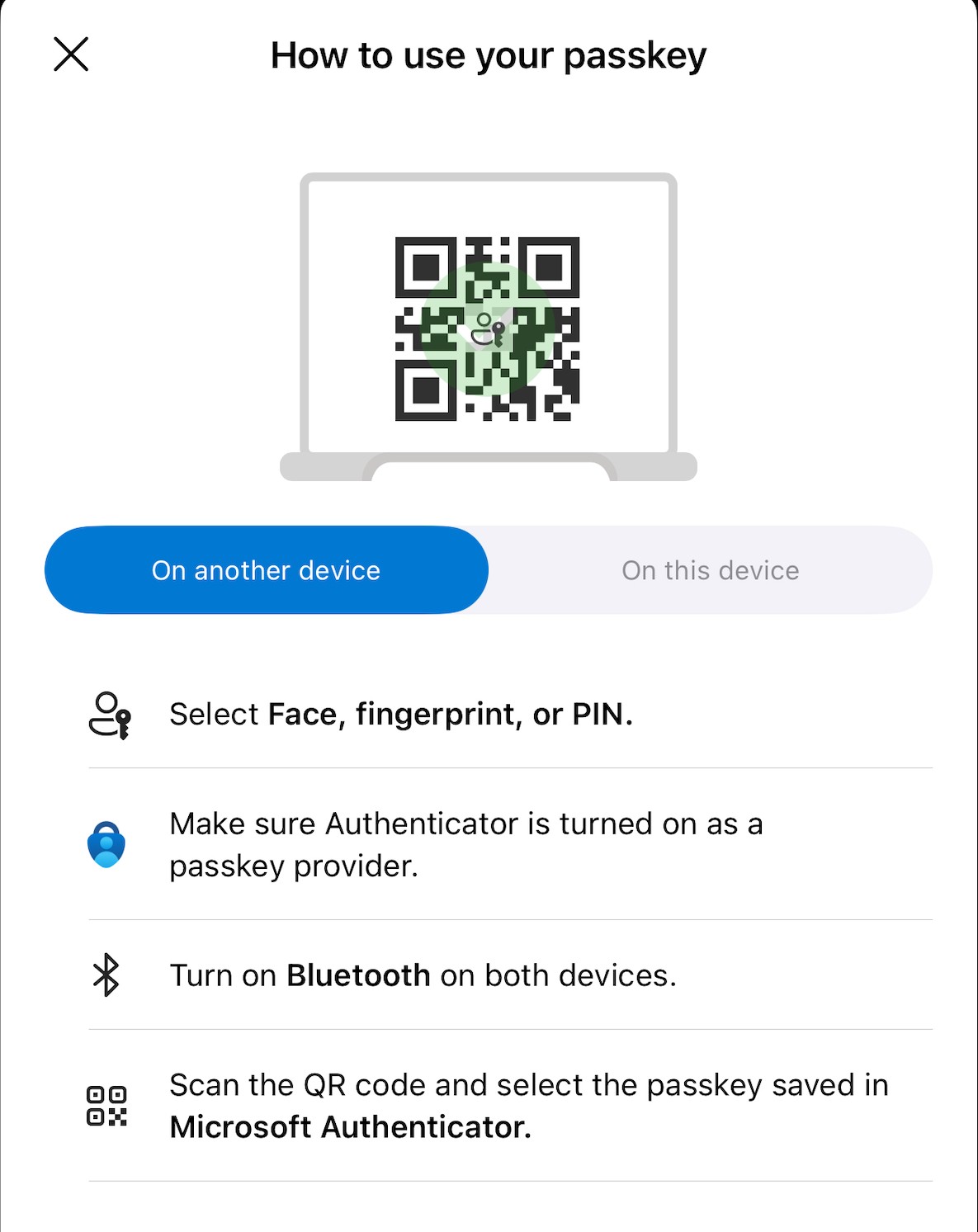 - Choose Use Passkey