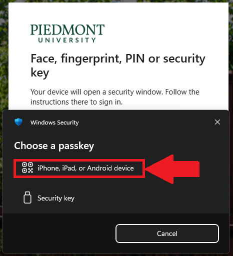 - On your mobile device, a message will appear "Sign in to login.microsoft.com" on the other device with your passkey for "@piedmont.edu" saved in "Authenticator" ?