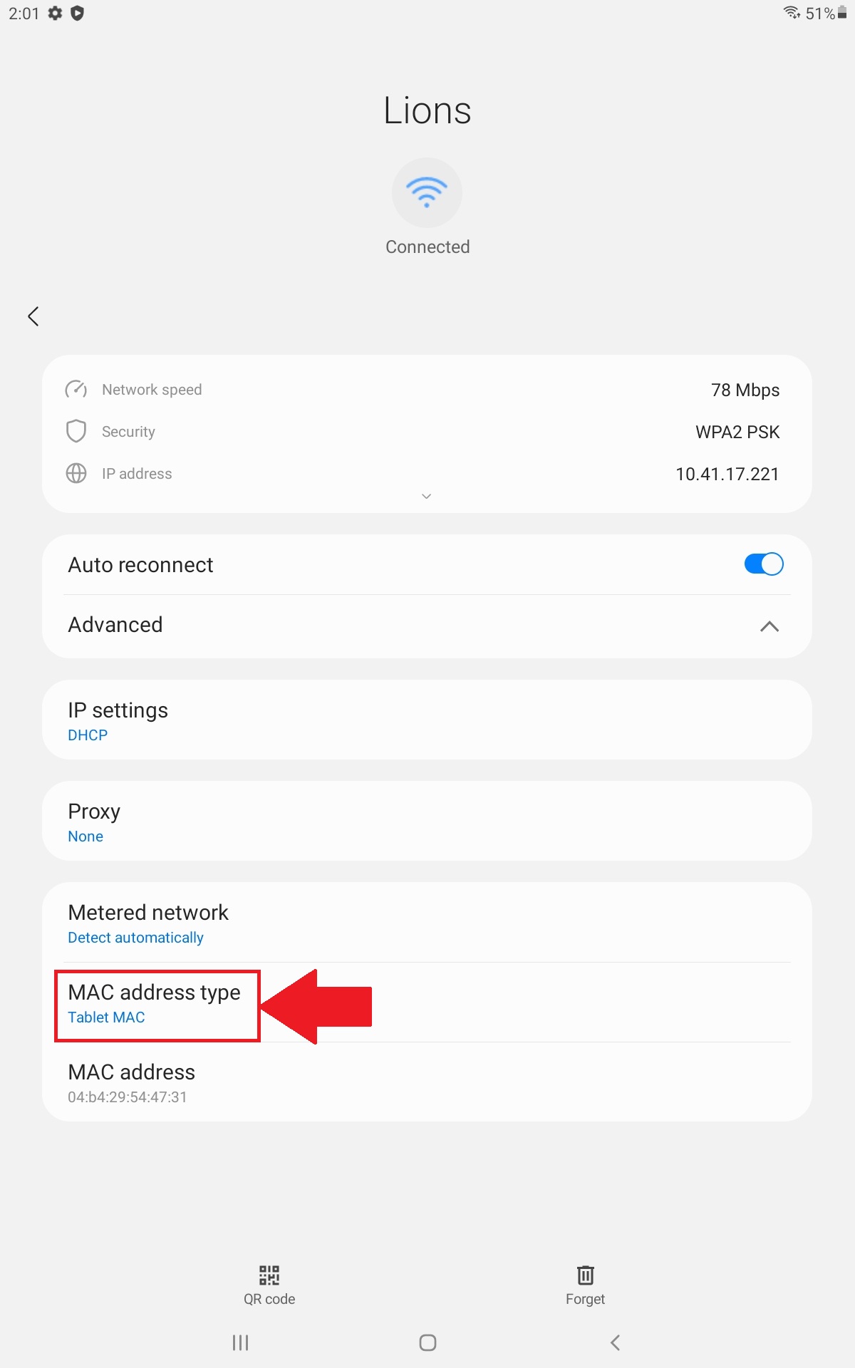 - Under MAC Address type, ensure Device MAC or Tablet MAC is selected.